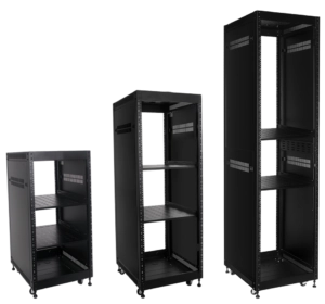 Knock outs in the top and bottom allow for cable ingress/egress. Cooling vents and fans ensure equipment stays at the ideal temperature. Lockable doors and side panels keep equipment safe and secure. Quick-release side panels allow full access to components and wiring.